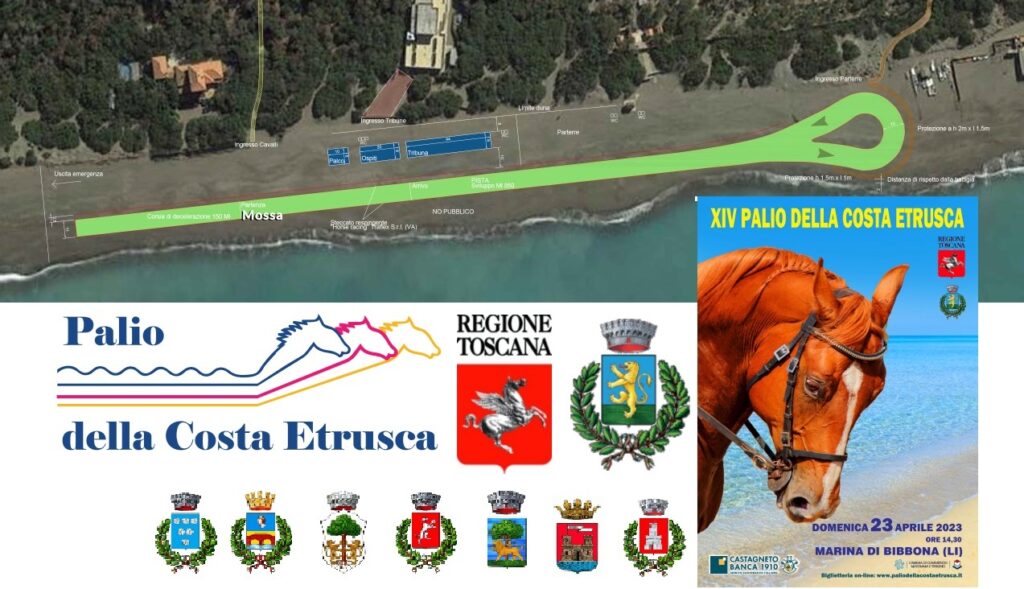Organizzato dall’ASD Palio della Costa Etrusca con il contributo del Comune di Bibbona ed il patrocinio della Regione Toscana, la manifestazione è l’unica corsa a pelo che si corre in riva al mare. Un’unicità che rende il Palio della Costa Etrusca un appuntamento bello e piacevole non solo per gli appassionati di cavalli e rievocazioni storiche ma sempre di più per il grande pubblico. Il Palio della Costa Etrusca, che ricordiamo si corre di domenica, sarà accompagnato da quattro giorni di eventi ed ospiti straordinari come i mitici fantini Andrea Degortes detto Aceto e Silvano Vigni detto Bastiano, 19 vittorie a Piazza del Campo in due, insieme al driver di Varenne, Giampaolo Minucci attesi venerdì 21 aprile (ore 21.00) al Teatro “La Palestra” per un talk show irripetibile. In agenda giovedì 20 aprile (ore 21.00) la proiezione del film “The Palio” presso il Teatro “La Palestra” di Bibbona e sabato 22 (ore 15.00) la Quintana Etrusca a coppie miste. Il clou è in programma domenica 23 aprile dalle ore 14.30 con l’apertura del Palio della Costa Etrusca, la fase eliminatoria, la corsa dei pony e delle amazzoni e la finalissima al tramonto.