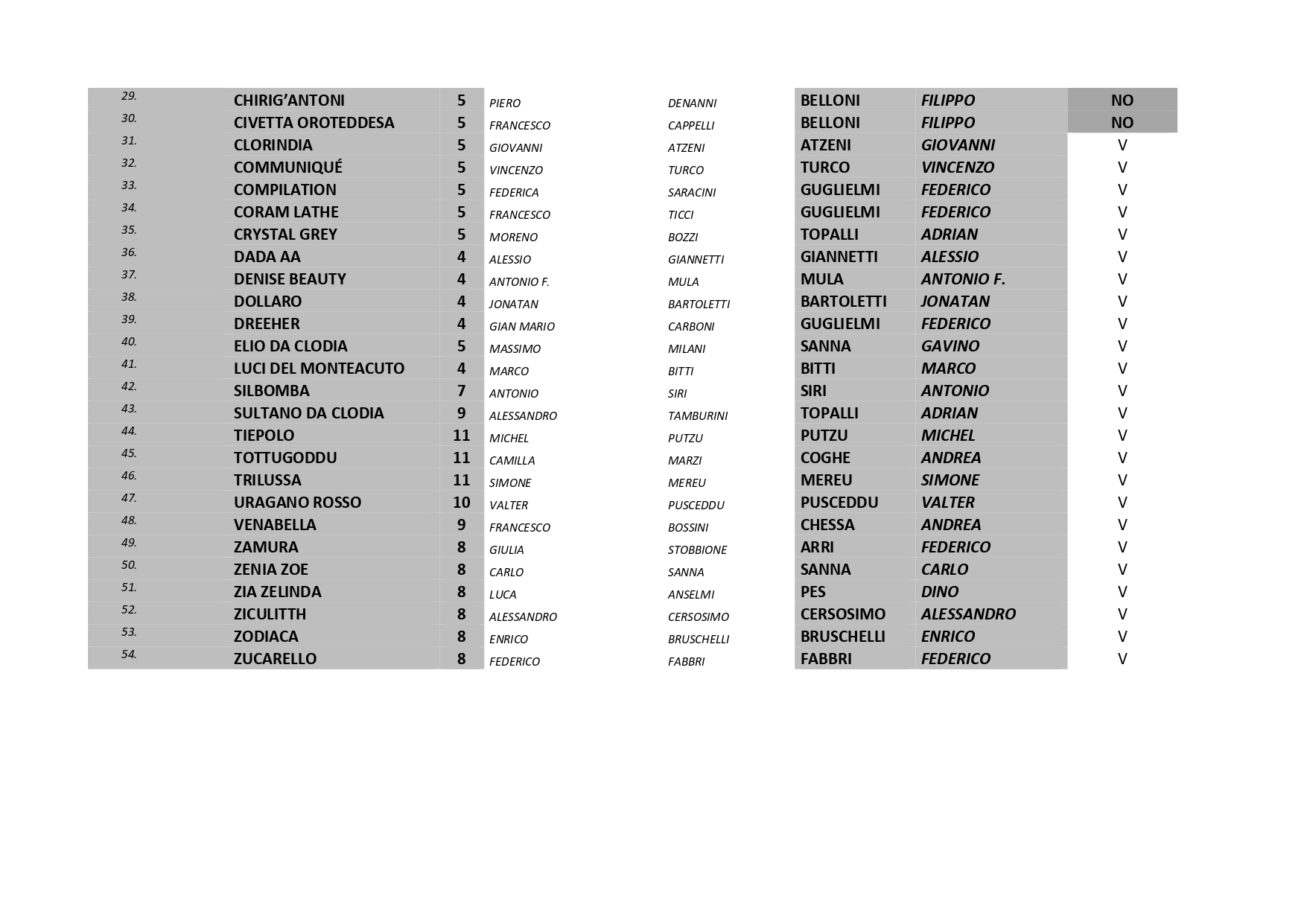 Sono 54 i cavalli icritti a Fucecchio per le previsite del Palio di Domenica 21/05. Qua sotto il dettaglio degli iscritti