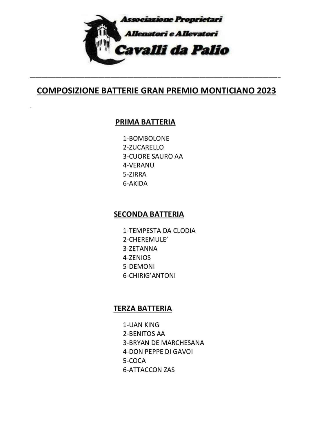 Gran Premio Monticiano: Ecco le batterie 2023