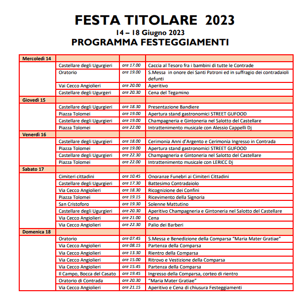 Castellare degli Ugurgieri ore 18.00 Cerimonia Anni d’Argento e Cerimonia Ingresso in Contrada