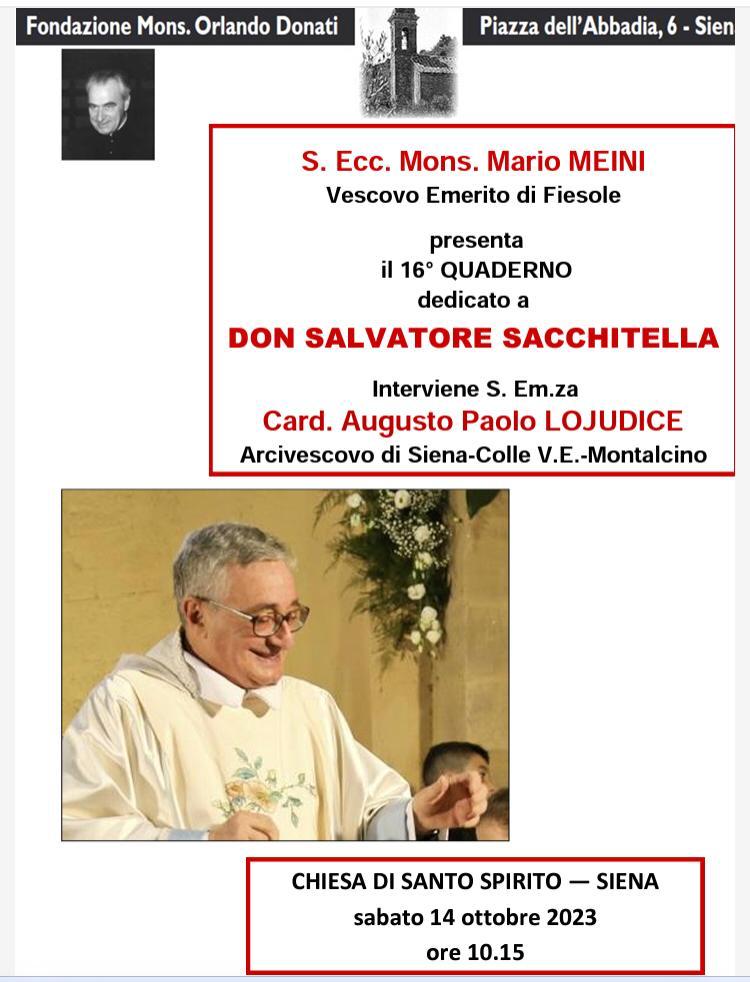 Sabato 14 ottobre, alle ore 10:15_ presso la Chiesa di Santo Spirito si terrà la presentazione del Quaderno della Fondazione Donati su Don Salvatore Sacchitella.