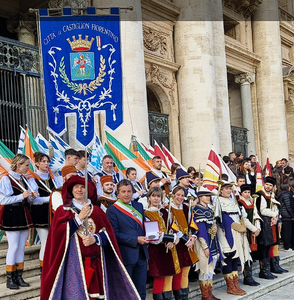 Trasferta vaticana per il Comune di Castiglion Fiorentino che, con una delegazione dell’Ente Palio “Città di Castiglion Fiorentino”, ha preso parte, da una posizione di assoluto privilegio, all’Udienza Generale del mercoledì del Santo Padre in piazza San Pietro.