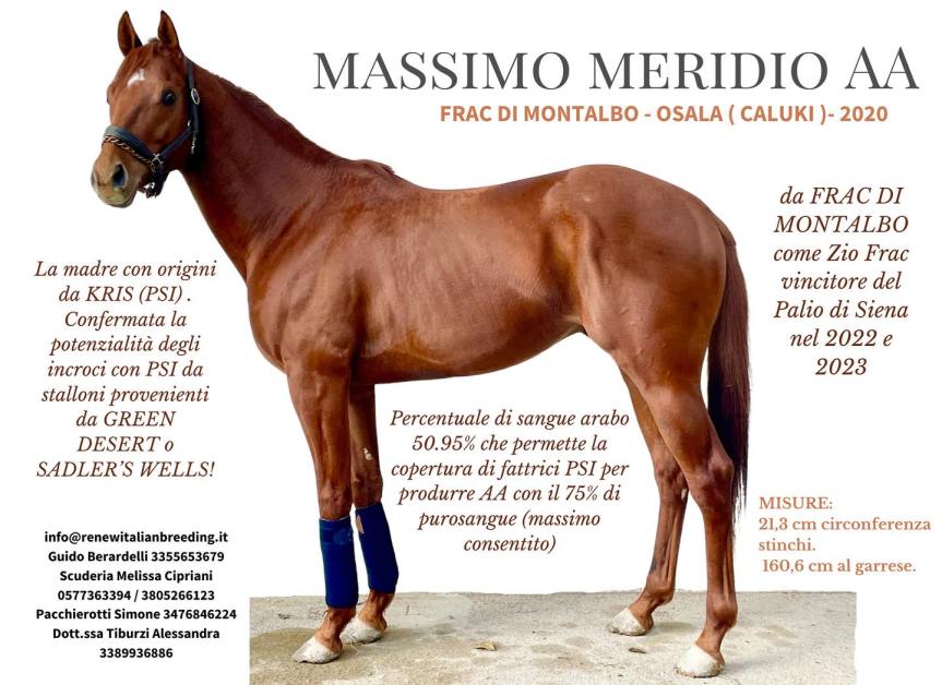 – STALLONE AA PERFETTO PER FARE CAVALLI PER LA “PIAZZA” E PER LE REGOLARI CHE PUÒ COPRIRE DIRETTAMENTE GIUMENTE PUROSANGUE: