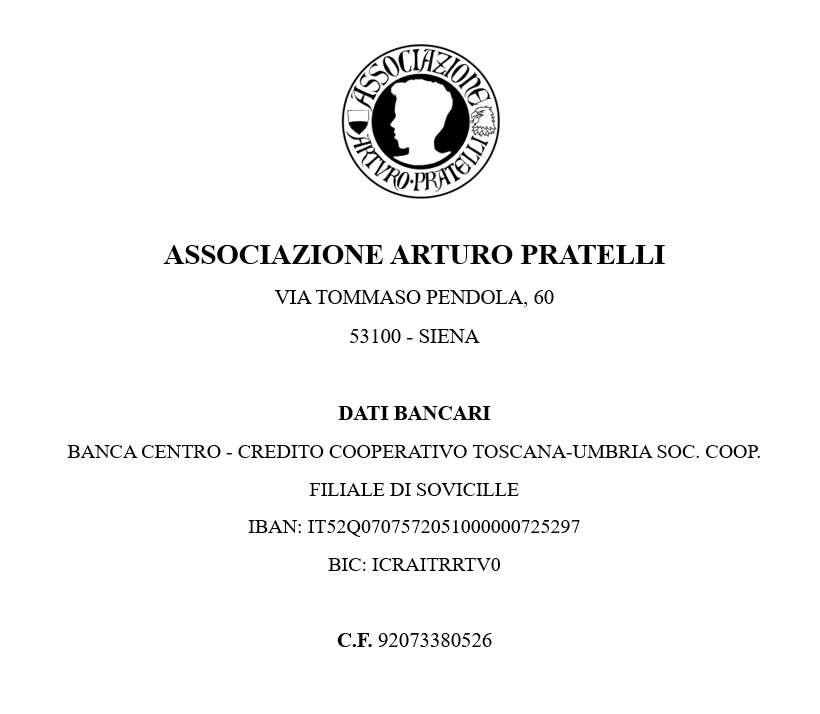 Ci si può iscrivere all’Associazione anche effettuando il bonifico della donazione volontaria (minimo 10 euro a persona) all’IBAN: IT52Q07075720151000000725297 con causale “Tesseramento Associazione Arturo Pratelli + Nome dei Tesserati”.