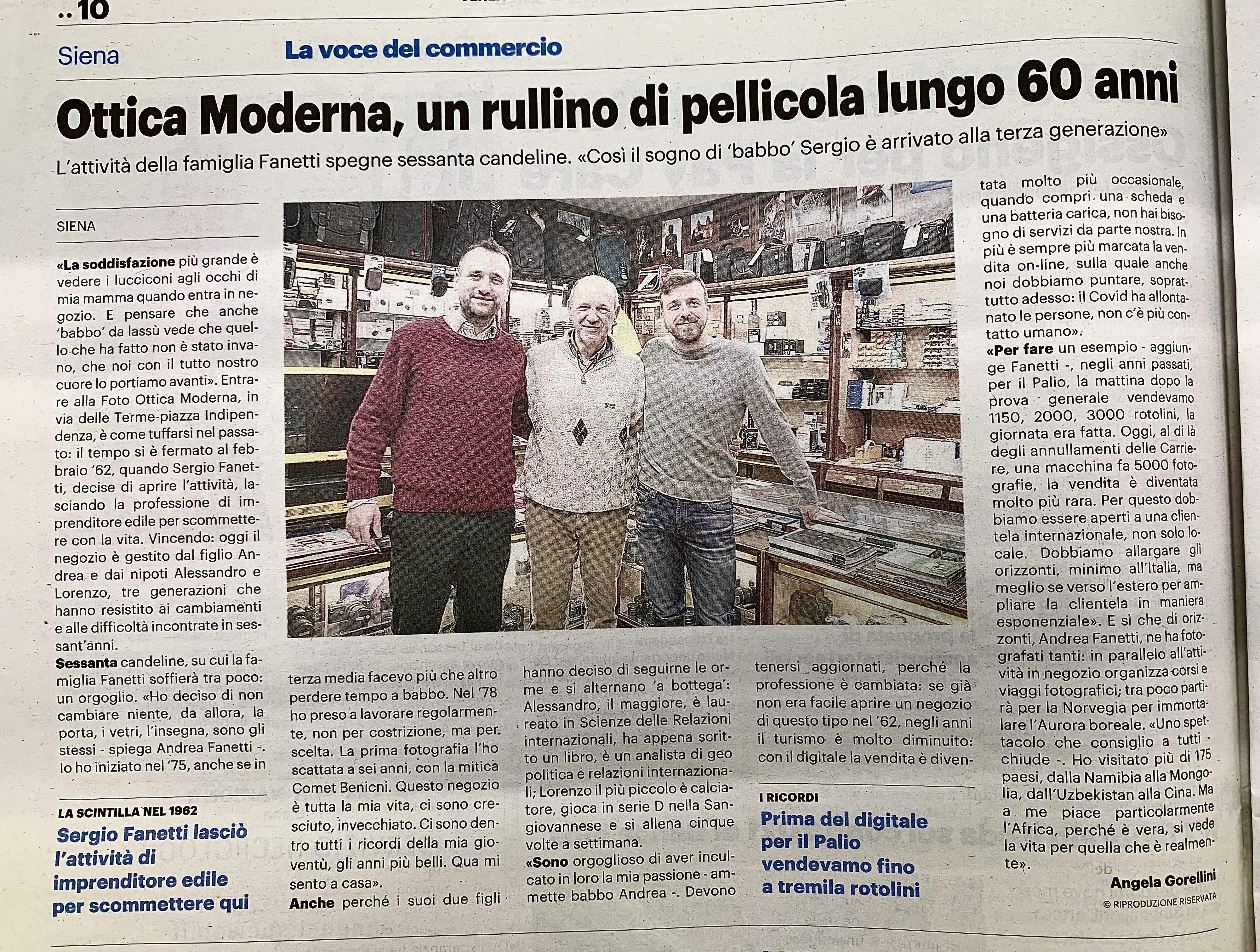 Dal 1962 siamo un punto di riferimento nella vendita al dettaglio di materiale fotografico, grazie alle competenze e alla professionalità di tutto lo staff maturata negli anni. Prodotti di altissima qualità con garanzia ufficiale: droni, action cam, macchine fotografiche analogiche, macchine fotografiche instatanee e molto altro ancora. Specializzati sia in macchine fotografiche professionali che in quelle amatoriali. Inoltre offriamo la nostra esperienza per servizi fotografici e organizziamo corsi di fotografia per chiunque voglia approfondire la propria passione fotografica. Realizziamo stampe in carta fotografica di ogni formato e per un regalo più originale, su tela, alluminio, legno, forex e tante altre soluzioni. Venite a trovarci nell’originale bottega di fotografia a Siena!