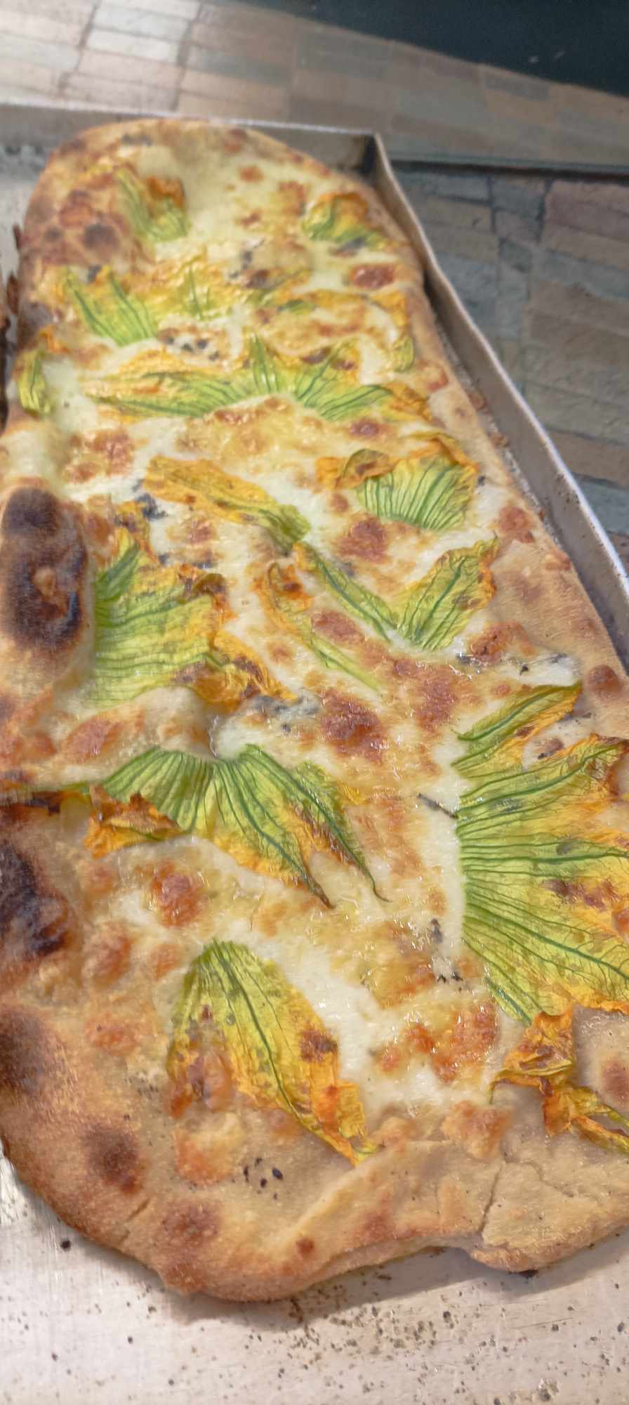 L’altro è il ciaccino con i fiori di zucca e il tartufo, altro ciaccino veramente meraviglioso dove i due ingredienti si legano in un connubio di gusto.